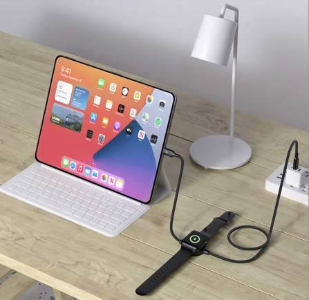 2 in 1 USB-C to USB-C PD65W FAST charging Cable with round shaped iWatch wireless charger