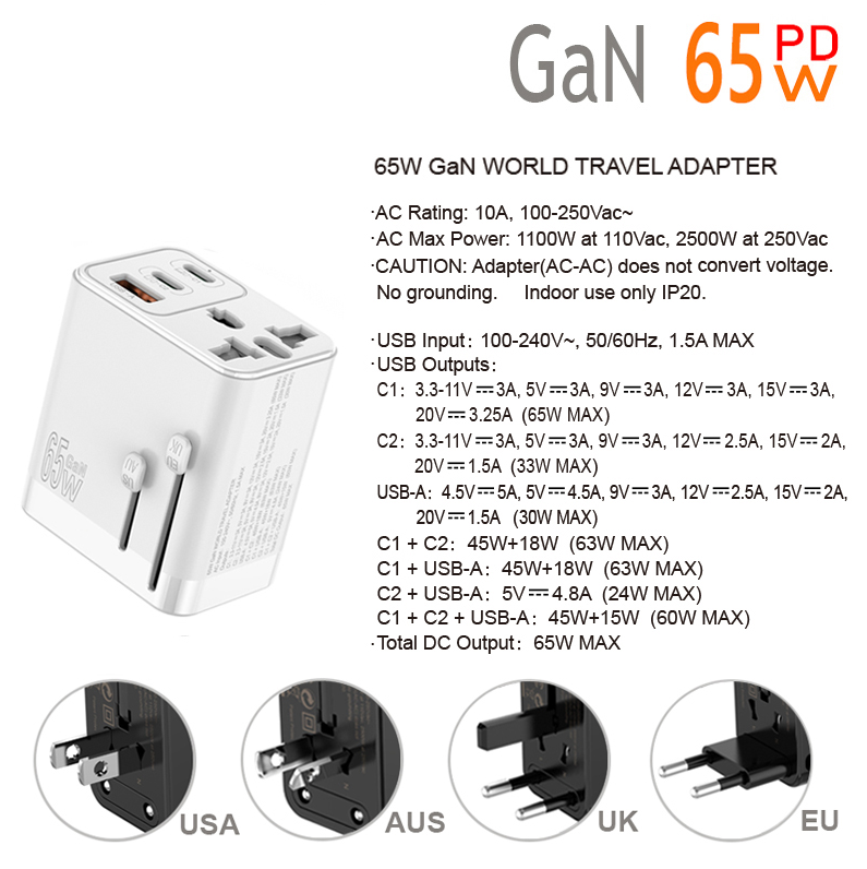 C1: 3.3-11V 3A, 5V 3A, 9V 3A, 12V 3A, 15V 3A, 20V 3.25A (65W MAX)